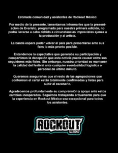 Por esta vía, Rockout México subrayó que el festival continúa tal y como fue anunciado originalmente y que en los próximos días se dará a conocer al artista que tomará el lugar que inicialmente estaba previsto para Evaristo. La producción aseguró que el objetivo es mantener el nivel artístico y la coherencia del cartel, diseñado desde el inicio para ofrecer una experiencia sólida para la comunidad punk, hardcore y ska del país.
